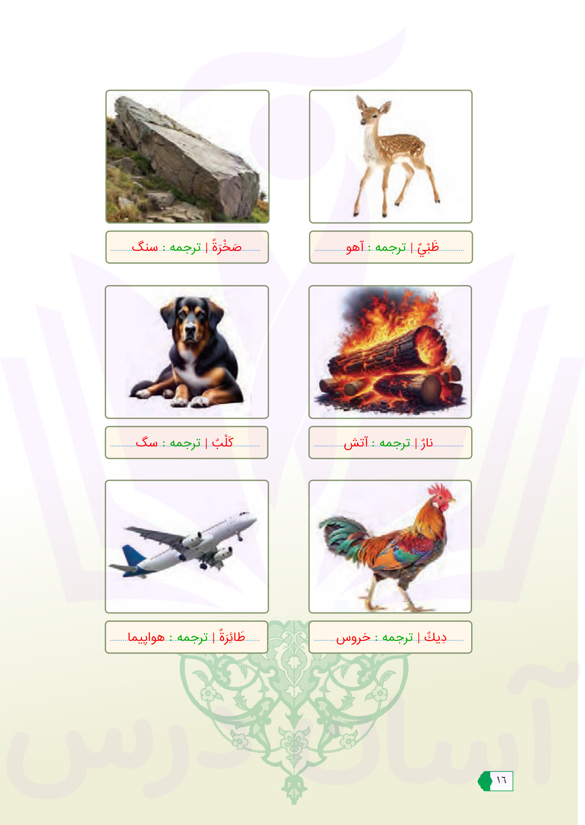 عربی هفتم : پاسخ تمرینات صفحه ۱۶