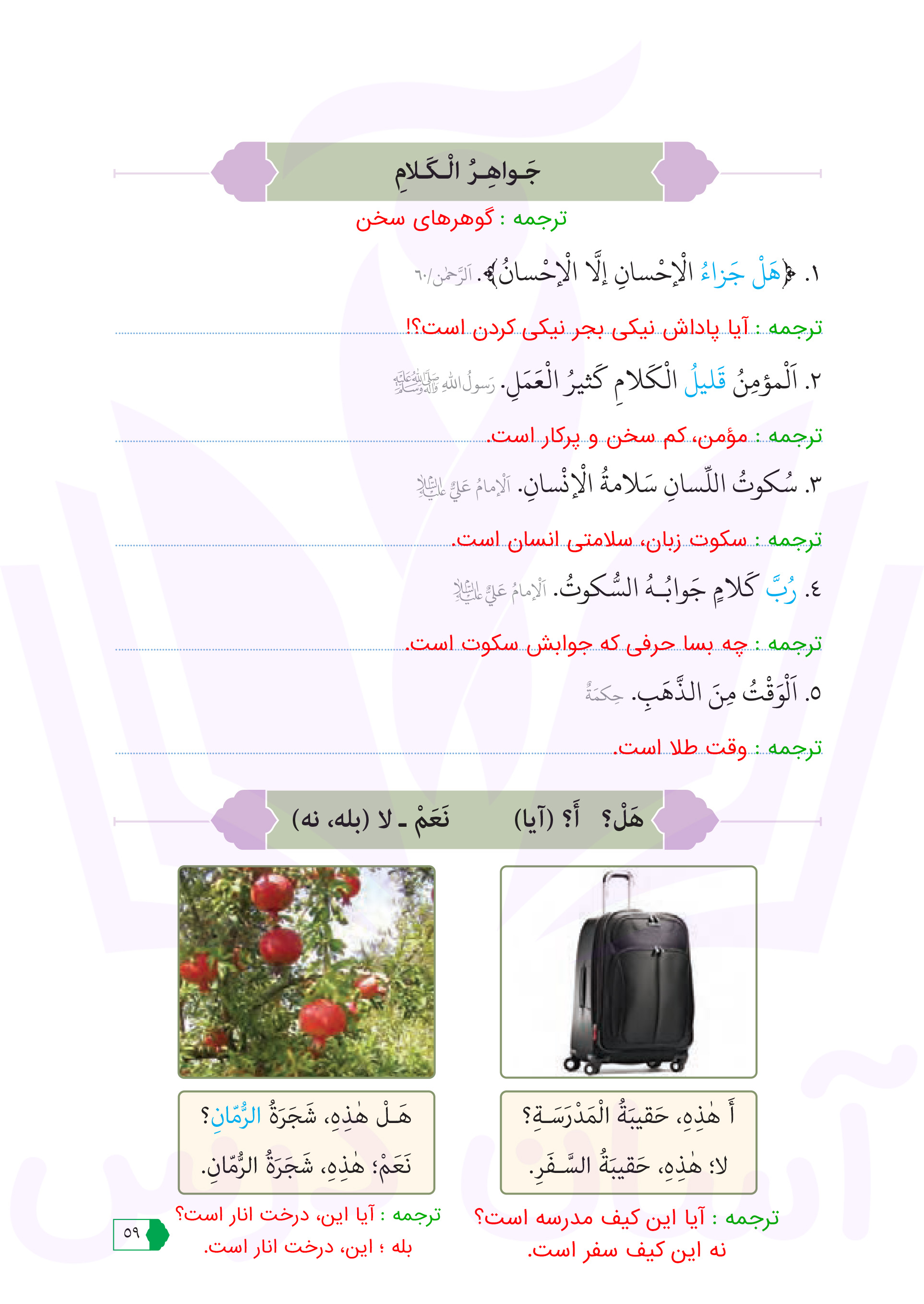 عربی هفتم : ترجمه درس هفتم صفحه ۵۹