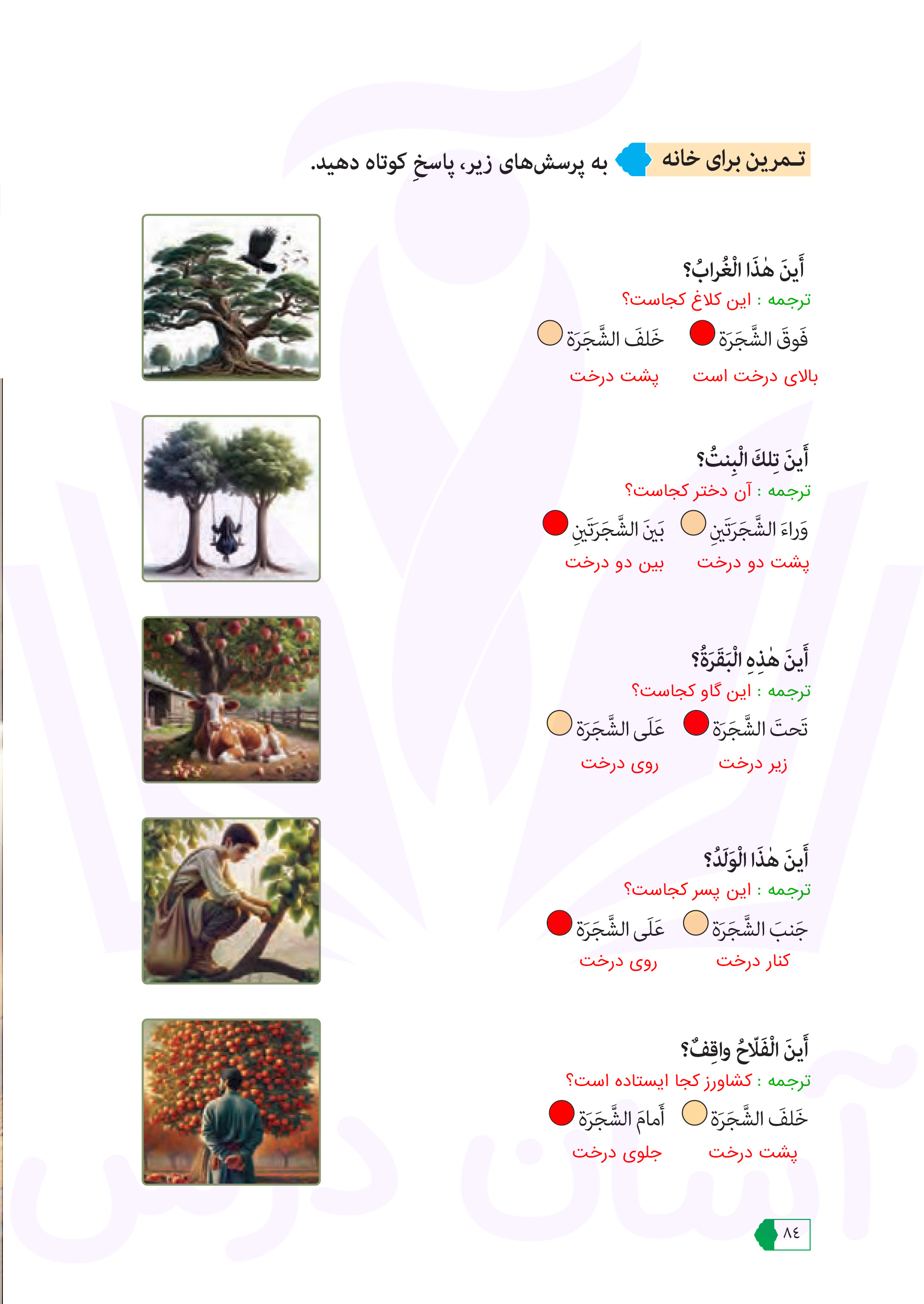 عربی هفتم : پاسخ تمرین برای خانه صفحه ۸۴
