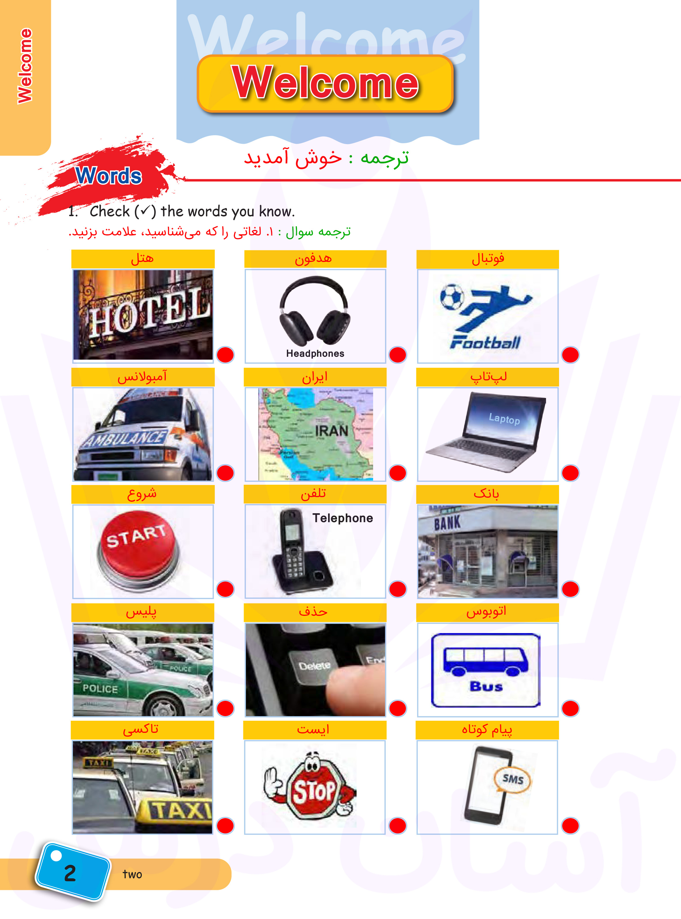 انگلیسی هفتم : پاسخ سوالات صفحه ۲