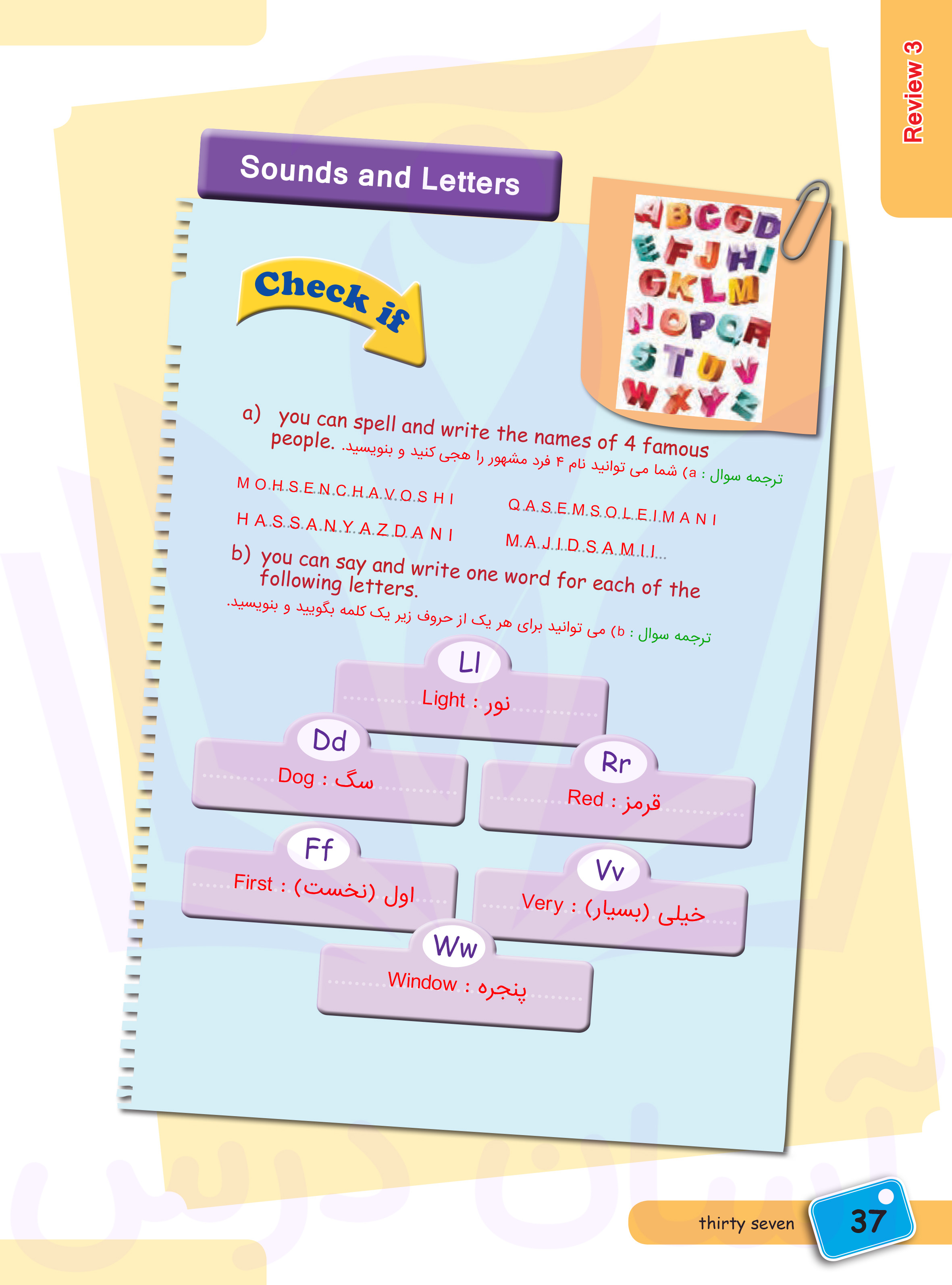 انگلیسی هفتم : پاسخ سوالات صفحه ۳۷