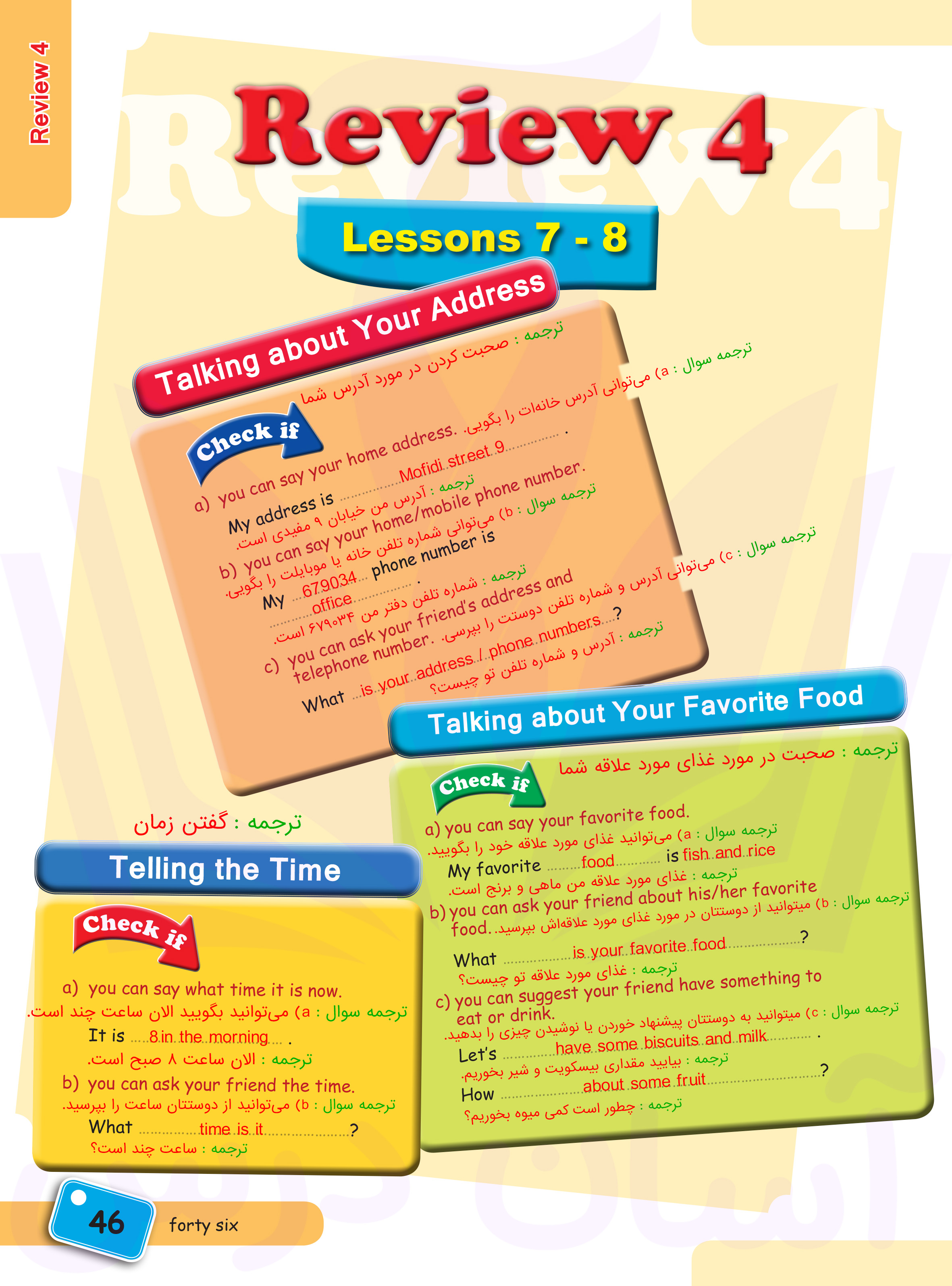 انگلیسی هفتم : پاسخ سوالات صفحه ۴۶