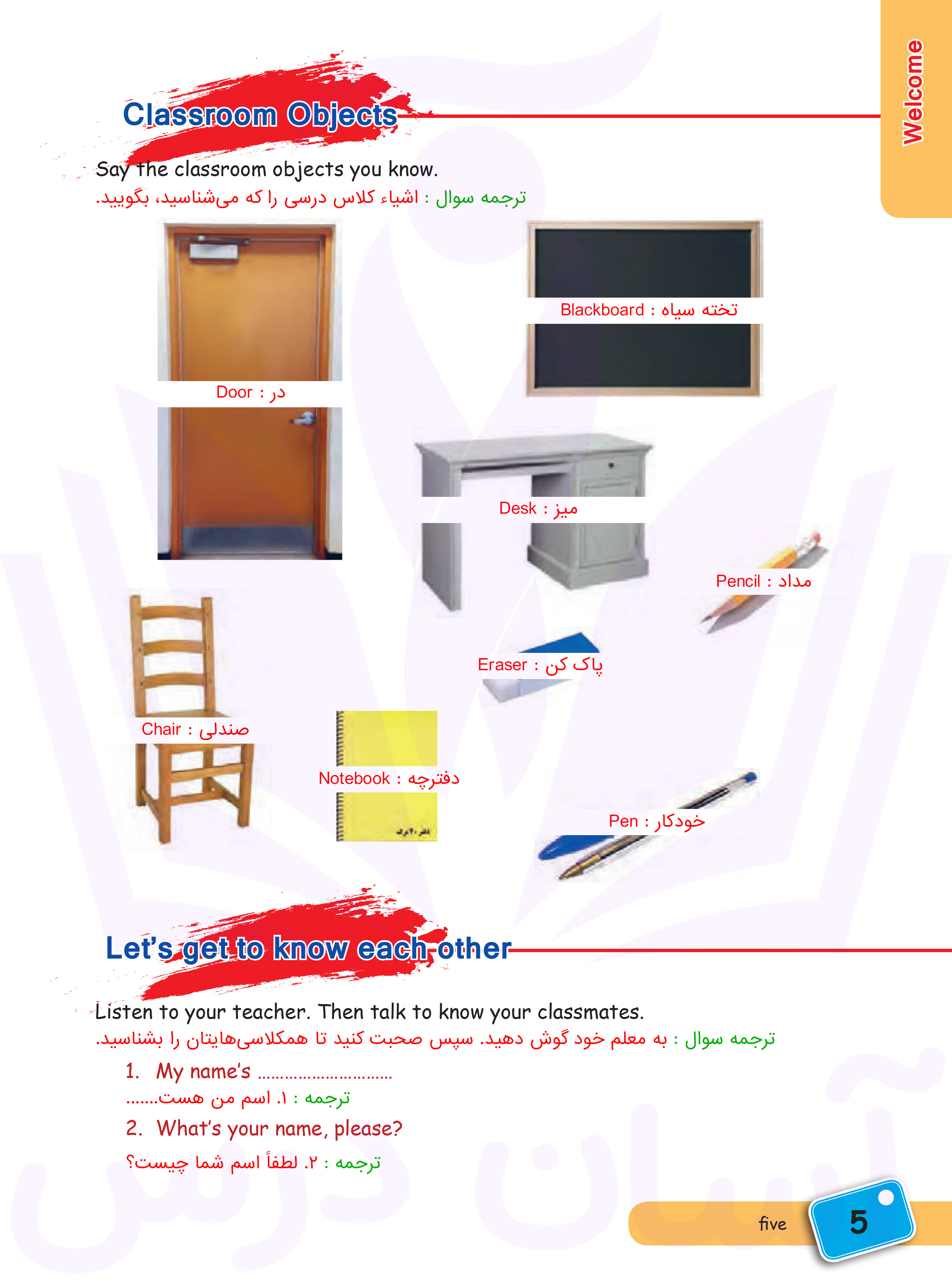 انگلیسی هفتم : پاسخ سوالات صفحه ۵