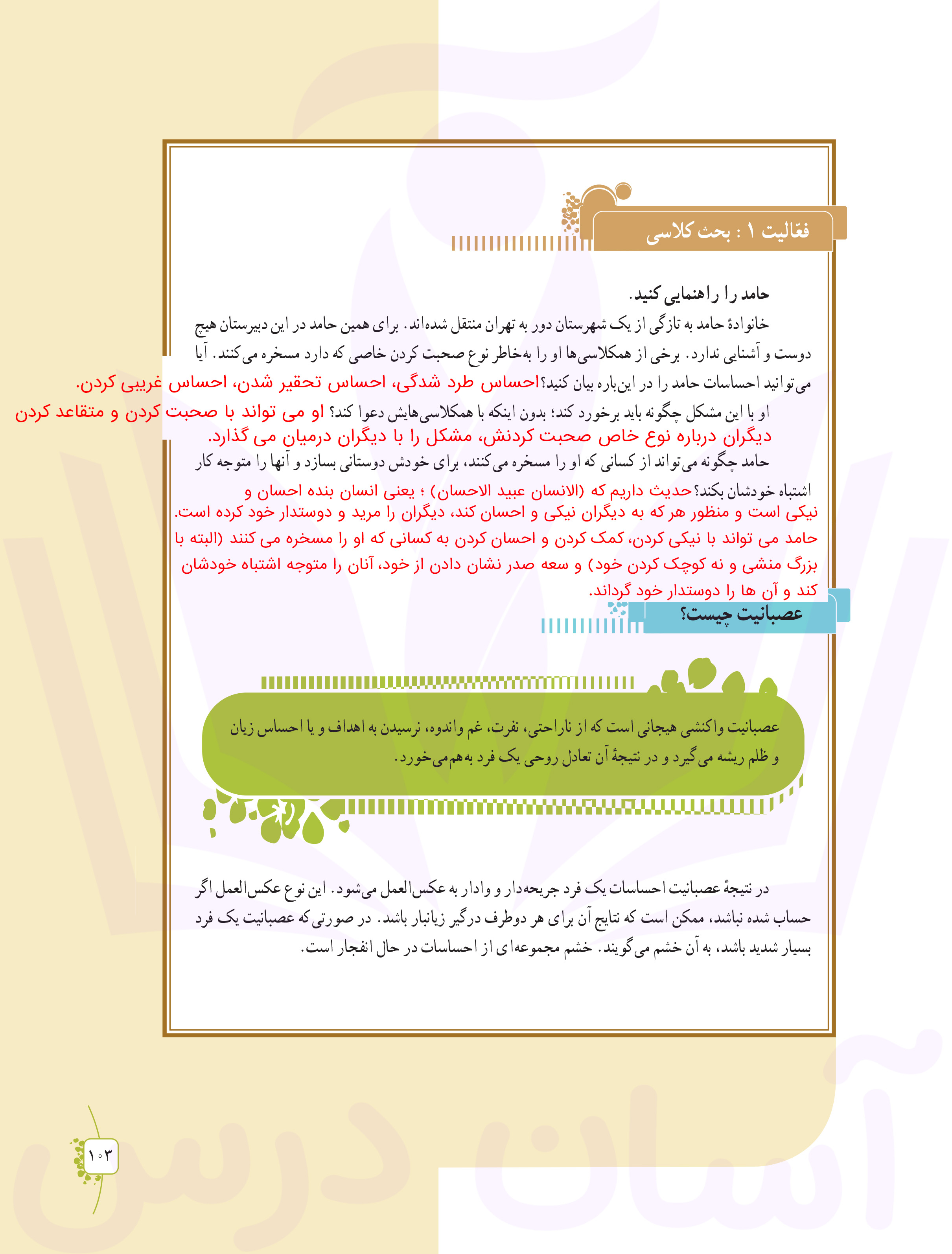 تفکر هفتم : پاسخ فعالیت صفحه ۱۰۳