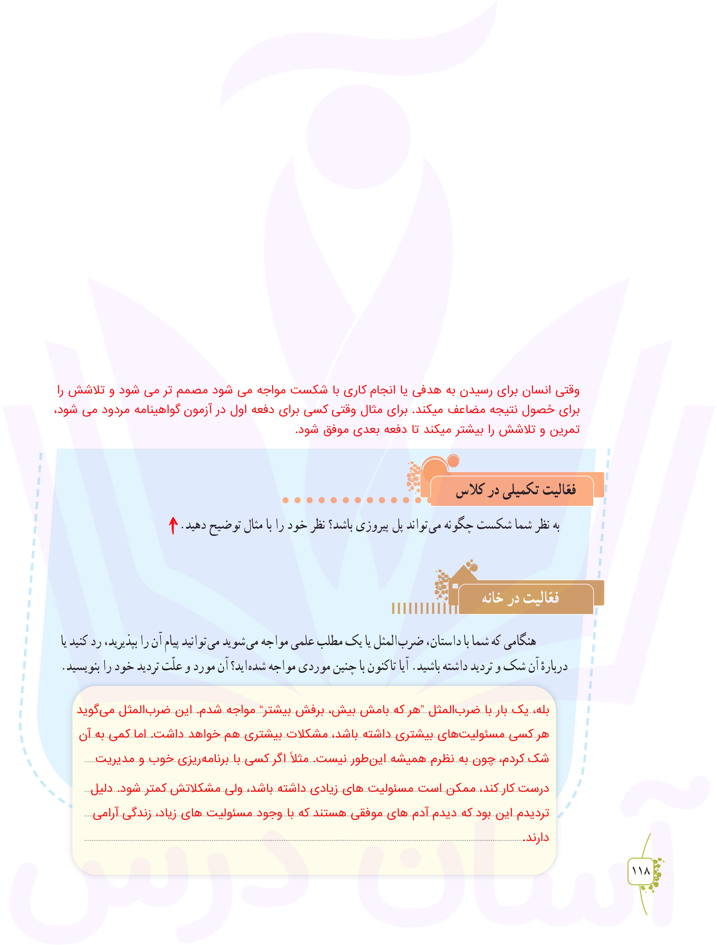 تفکر هفتم : پاسخ سوالات صفحه ۱۱۸