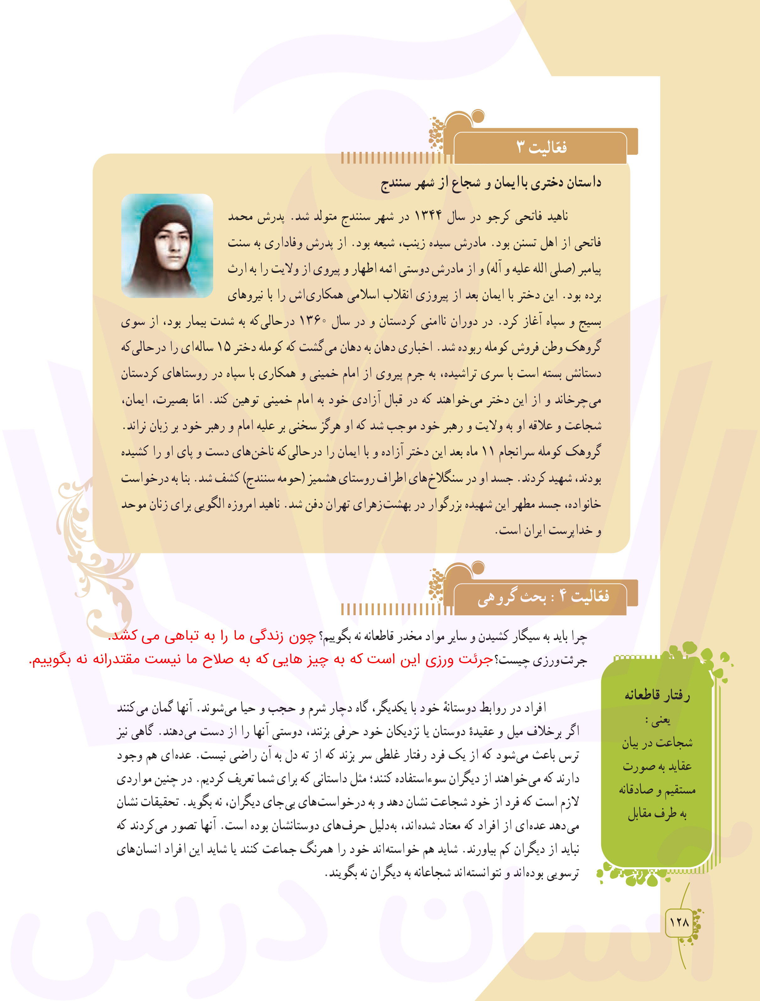 تفکر هفتم : پاسخ فعالیت صفحه ۱۲۸