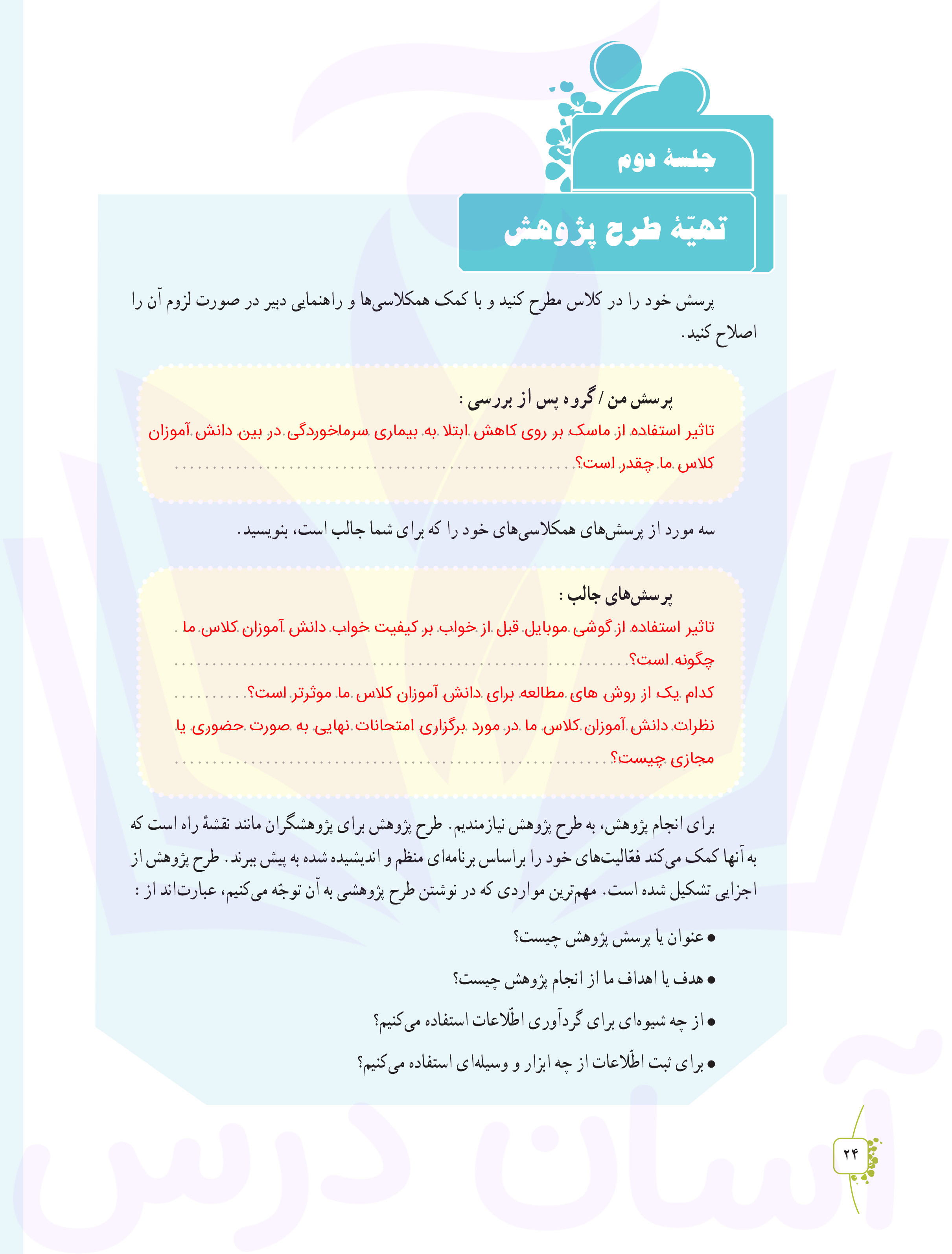 تفکر هفتم : پاسخ سوالات صفحه ۲۴
