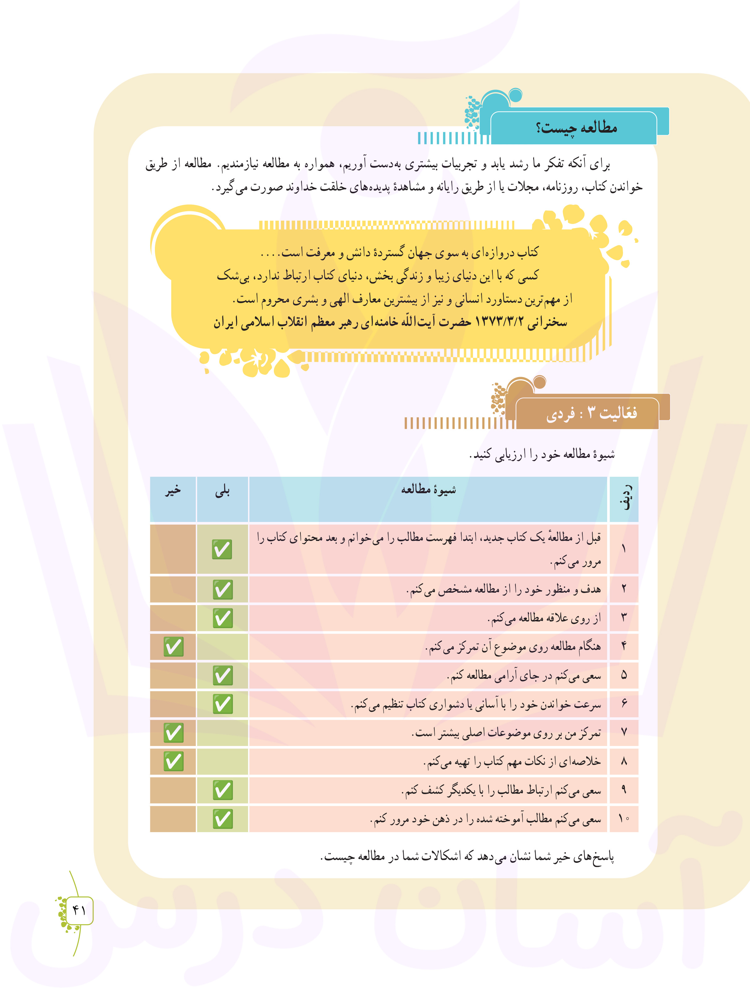 تفکر هفتم : پاسخ فعالیت صفحه ۴۱