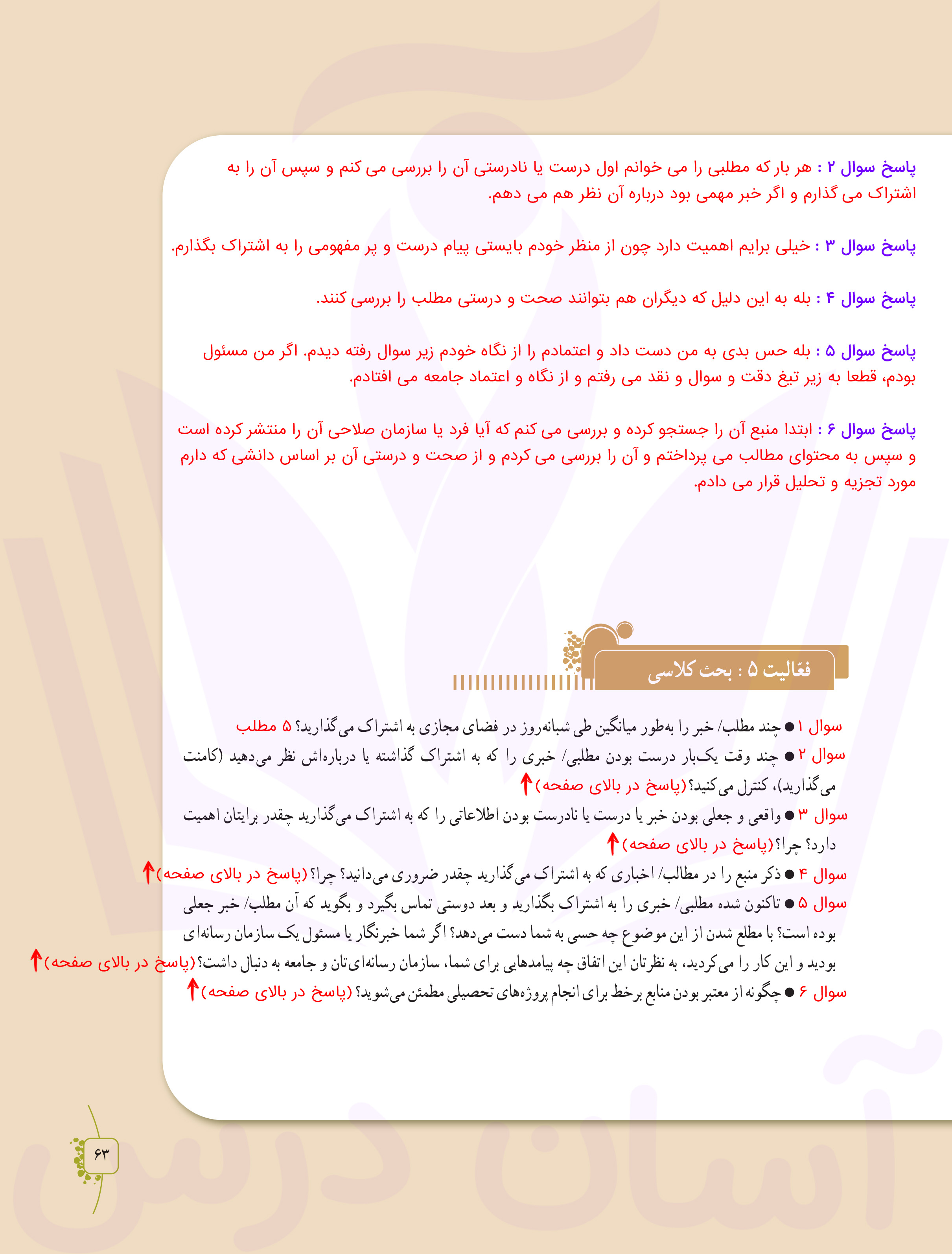 تفکر هفتم : پاسخ فعالیت صفحه ۶۳
