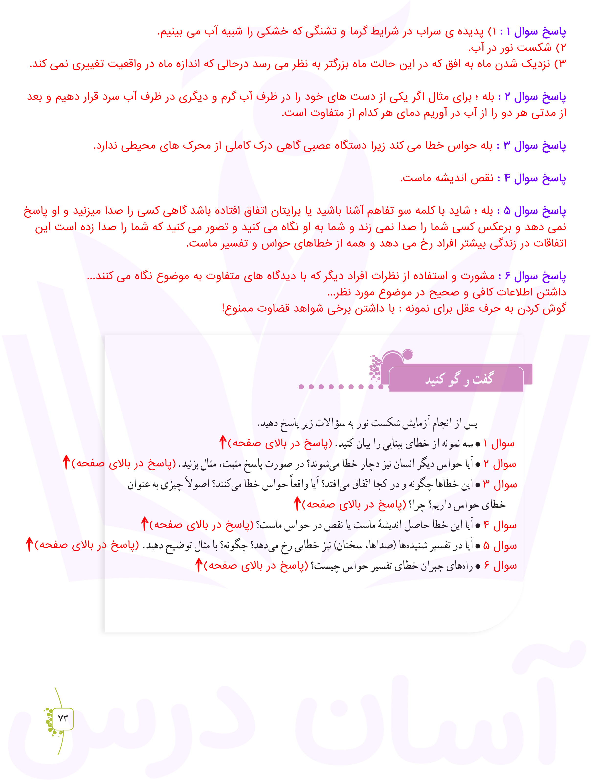 تفکر هفتم : پاسخ گفت و گو کنید صفحه ۷۳