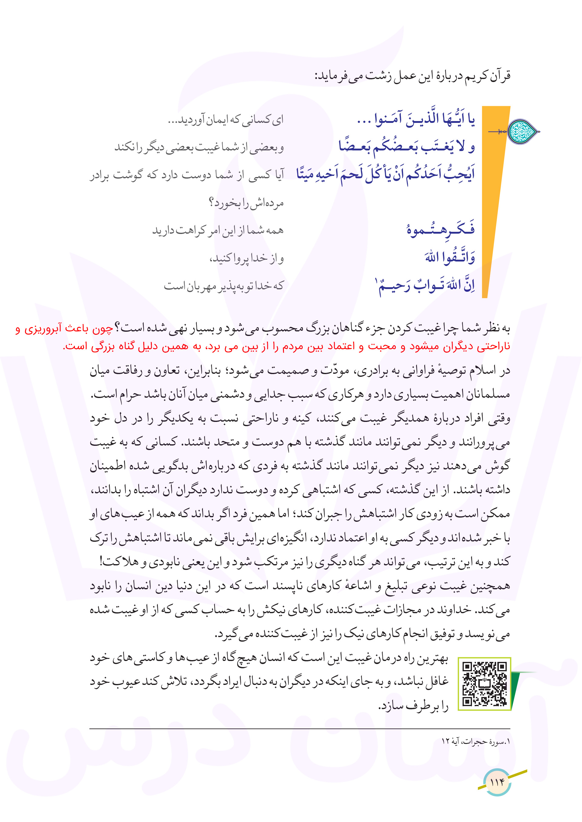 پیام آسمان هشتم : پاسخ سوالات صفحه ۱۱۴