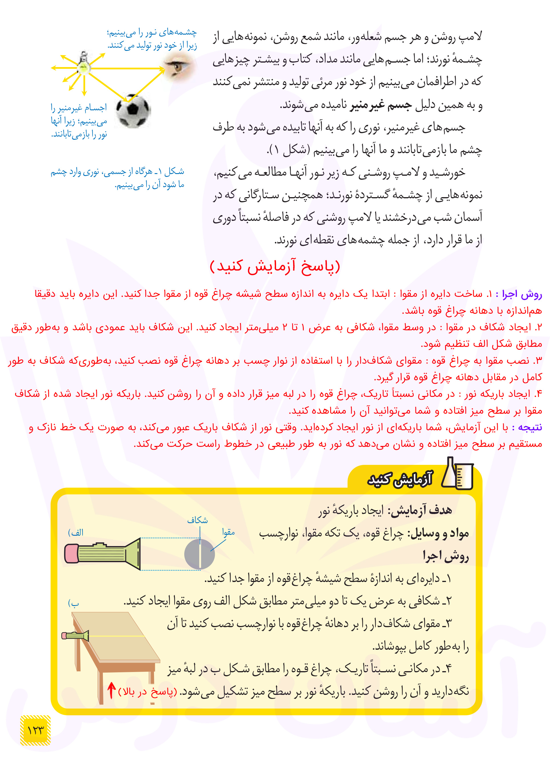 علوم هشتم : پاسخ آزمایش کنید صفحه ۱۲۳