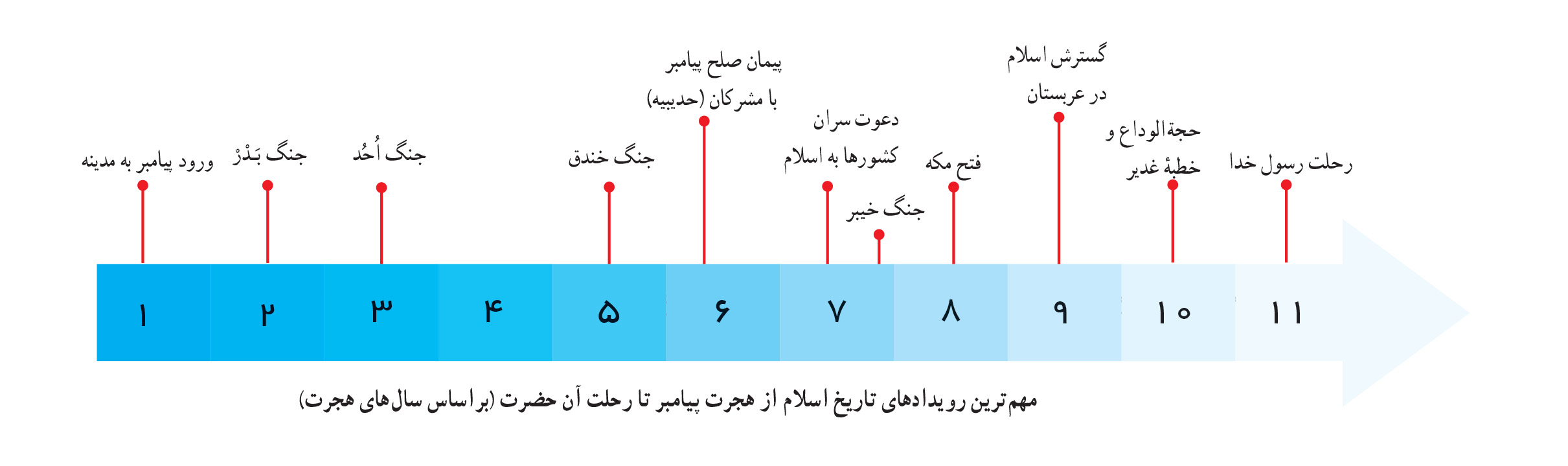 ۳۸. مهمترین رویداد های تاریخ اسلام از هجرت پیامبر تا رحلت آن حضرت را بنویسید؟