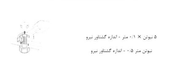 پاسخ : اندازه نیرو × فاصله اثر نیرو تا محور چرخش = اندازه گشتاور